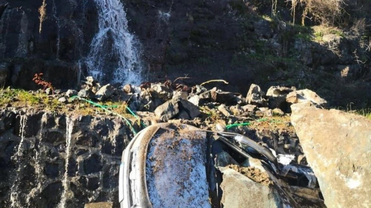 Artvin’in Murgul ilçesinde yamaçtan kopan kayalar park halindeki aracın üzerine düştü.