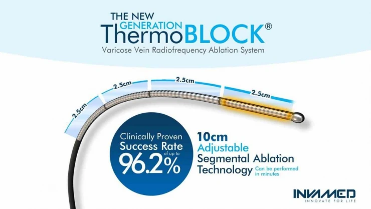 INVAMED Başkanı Raşit Dinç, ThermoBlock’un gelişim süreci ve bu teknolojinin varis tedavisindeki önemini işaret ederek: "ThermoBlock, varis tedavisinde kullanılan geleneksel yöntemlerden farklı olarak, daha hızlı, daha az ağrılı ve daha etkili bir tedavi sunuyor. Radyo frekans teknolojisi, damar içindeki ısıyı kontrollü bir şekilde uygulayarak tedavi optimizasyonunu sağlıyor.