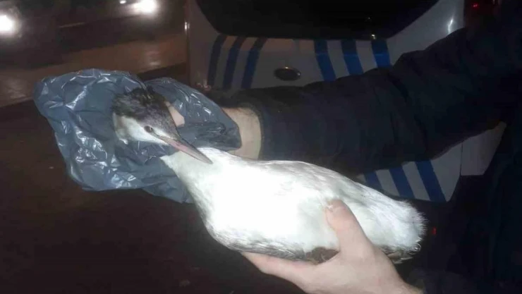 Yaralı karabatak kuşuna polis şefkati