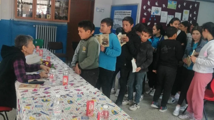 İzmir Sarıgöllüler Derneği tarafından Sarıgöl Bahadırlar Hüseyin Keşkekoğlu Ortaokulu öğrencilerine yarıyıl tatilinde dağıtılan hikaye kitaplarının yazarı Vicdan Efe, okulda öğrencilerle buluşarak sohbet edip kitaplarını imzaladı.