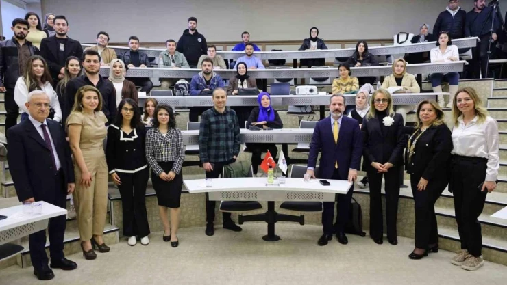 Cine Amfi’de gerçekleşen programa HKÜ Rektör Yardımcıları Prof. Dr. Gül Rengin Küçükerdoğan ve Prof. Dr. Mehmet Lütfi Yola, İktisadi İdari ve Sosyal Bilimler Fakültesi (İİSBF) Dekanı Prof. Dr. Hanifi Aslan, HKÜ-SEM Müdürü Dr. Öğr. Üyesi Sema Mercanoğlu Erin, akademisyenler ve öğrenciler katıldı.