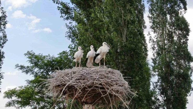 Yavru leylekler uçmaya hazırlanıyor