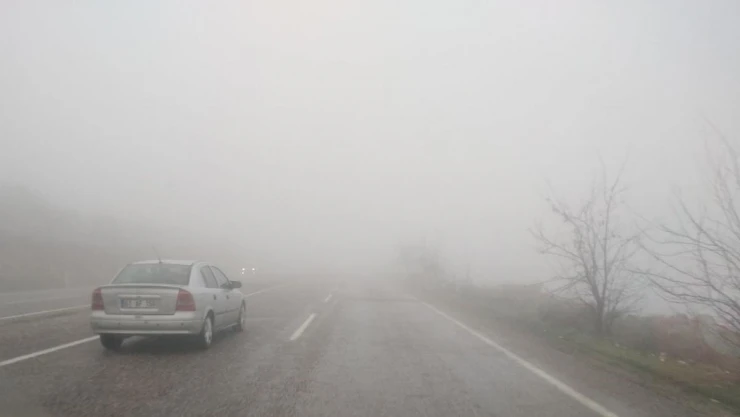 Yoğun sis nedeniyle seyir halindeki araçlar ise kontrollü bir şekilde ilerlemeye çalıştı.