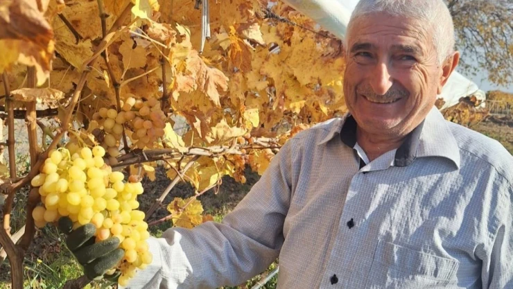 Manisa’nın Sarıgöl ilçesinde yaşayan üzüm üreticisi örtü altında beklettiği yaz meyvesi olan çekirdeksiz Sultani üzümü yılbaşı akşamı tüketmek üzere hasat etti.