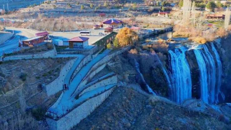 Dünyanın en büyük ikinci şelalesi olan Tortum Şelalesi, kış mevsiminde bile ziyaretçi ağırlamaya devam ediyor.