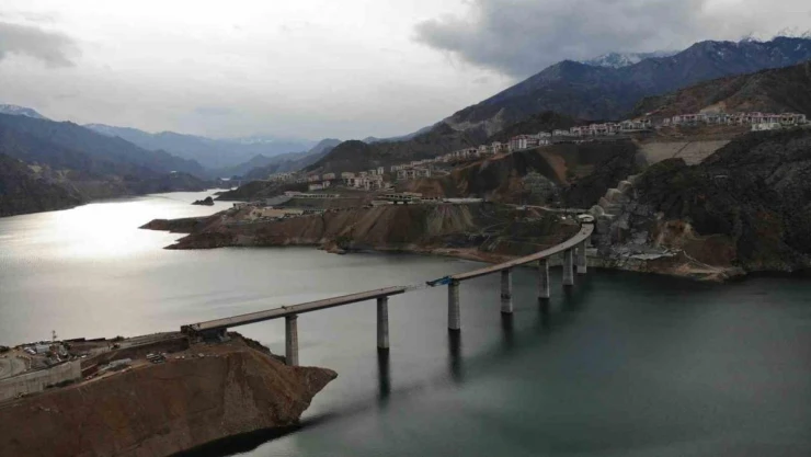 Yeni ilçe merkezini mevcut karayoluna bağlayacak olan baraj gölü üzerinde 150 metre yüksekliğinde 685 metre uzunluğunda, dengeli konsol ve dökme sistemi kullanılarak inşa edilen viyadük çalışmalarında sona gelindi.