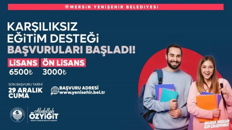 Mersin’in merkez ilçe Yenişehir Belediyesinin üniversite öğrencileri için yapacağı 2023-2024 yılı dönemini kapsayan eğitim yardımı başvuruları başladı.
