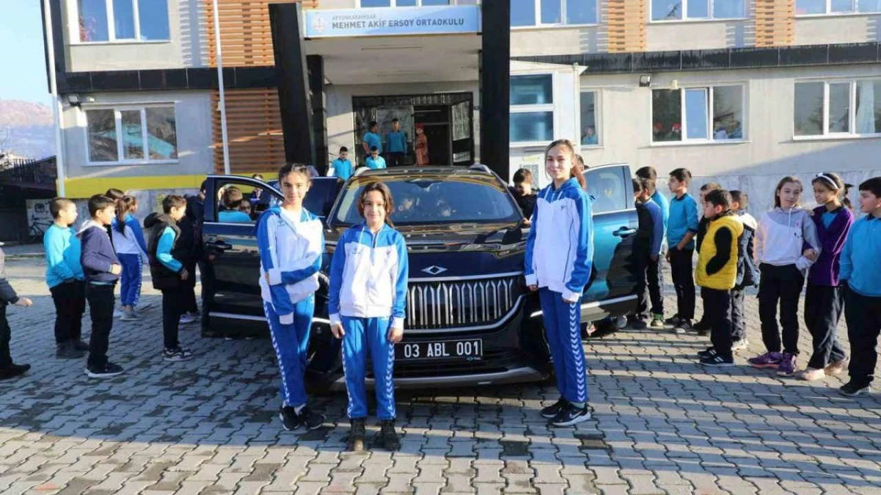 Afyonkarahisar Belediye Başkanı Mehmet Zeybek Yerli Malı Haftası nedeni ile Mehmet Akif Ersoy Ortaokulu öğrencileri ile buluştu. Etkinlikte Başkan Zeybek, belediye araç filosuna kazandırdığı, Türkiye'nin gururu yerli otomobil TOGG'u okul bahçesine getirilerek, öğrencilere tanıttı.