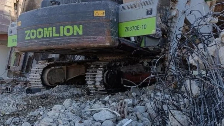 Hatay'da ağır hasarlı bina, yıkım esnasında iş makinesinin üzerine çöktü. Çökme sonrası operatör yaralandı.