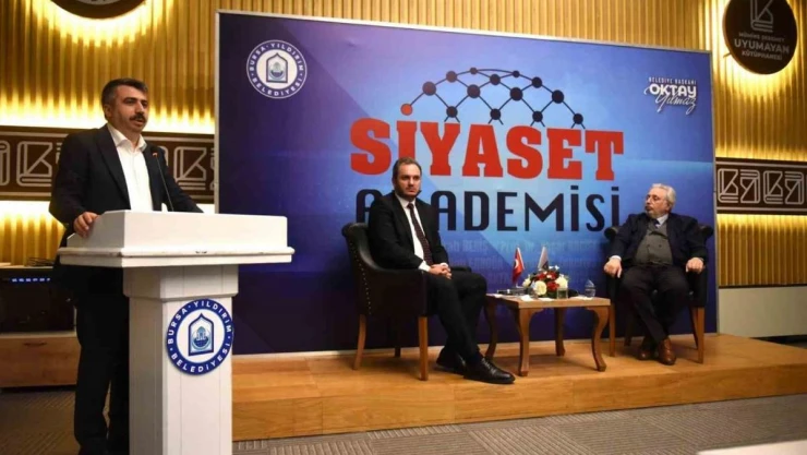 Yıldırım’ın ilim kenti kimliğini güçlendirecek işler yapmaya gayret ettiklerini ifade eden Yıldırım Belediye Başkanı Oktay Yılmaz, “Siyaset Akademisi projesi de bu gayretimizin bir meyvesidir. İnşallah 8 hafta boyunca birbirinden kıymetli hocalarımız gençlerimizle buluşacak ve onlara yeni ufuklar açacak. Bu akademinin kentimizin entelektüel ve ilmi birikimine önemli katkı sağlayacağına inanıyorum. Adeta bir okul görevi görecek akademimiz, gençlerimizin yeni bakış açıları elde etmesi için bir fırsat” dedi.