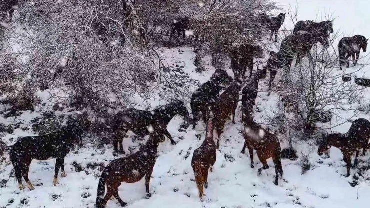 - Yılkı atlarının sürü halinde karlar içinde dolaşması güzel ve muhteşem görüntüler ortaya çıkardı