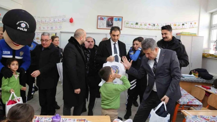 Erzurum İl Emniyet Müdürüm Kadir Yırtar, ziyaret ettiği TOKİ İlköğretim Okulu’nda çocuklara hediye verdi, şakalaştı ve onlarla sohbet etti.