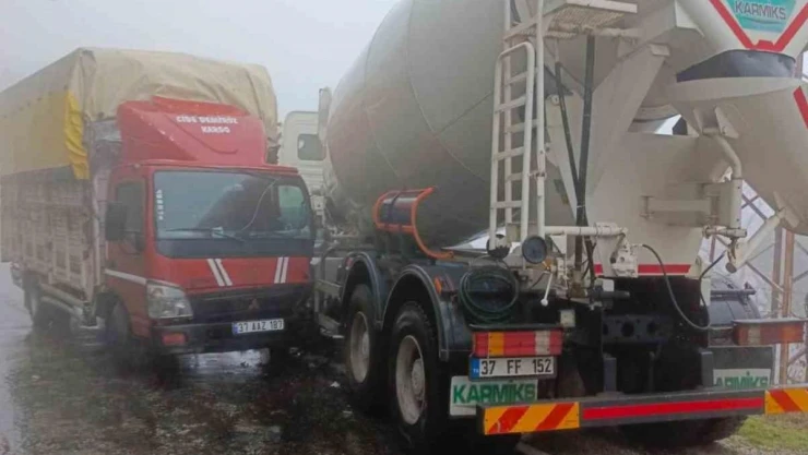 Kastamonu'nun Cide ilçesinde yoğun sis sebebiyle görüş mesafesinin düştüğü yolda beton mikseri ile kargo kamyonu çarpıştı. Kazada sürücüler yara almadan kurtuldu.