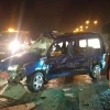 Kazada hurdaya dönen hafif ticari araç çekici vasıtasıyla otoparka çekildi.
