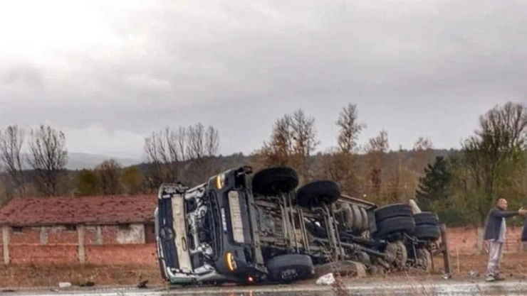 Kastamonu'nun Taşköprü ilçesinde sürücüsünün direksiyon hakimiyetini kaybetmesi neticesinde yoldan çıkan kamyon devrildi. Kazada sürücü yara almadan kurtuldu.
