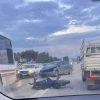 İzmir'in Menemen ilçesinde, seyir halindeki motosiklet sürücüsü karşı şeritteki araçların kaza yapıp kendisine çarpması sonucu ağır yaralandı. Hastanede yaşam mücadelesi veren 24 yaşındaki sürücünün hayati tehlikesinin bulunduğu öğrenildi.