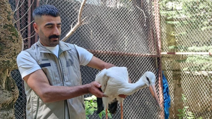 Bingöl'ün korucuları tarafından bulunan yorgun ve bitkin haldeki yavru leylek, tedavi altına alındı.