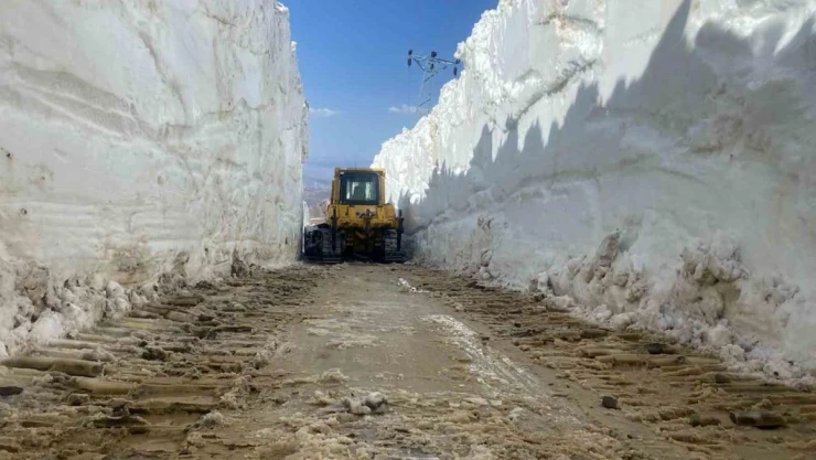 Hakkari’nin Yüksekova ilçesinin Doski Vadisi’nde 6 metreyi aşan karda yapılan çalışmalarda tünelleri andıran görüntüler ortaya çıktı.