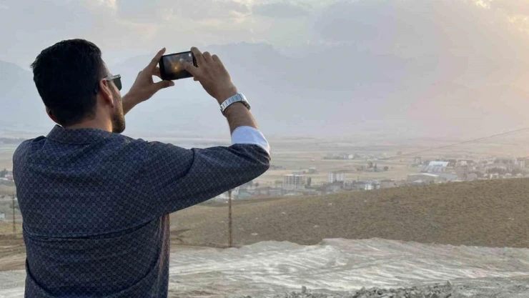 Hamdi Çavlı isimli vatandaş, “Buradan geçiyordum gözüm dağlara takıldı. Öyle bir toz bulutu vardı ki dağlar görünmüyordu. Bende arabandan inerek o anı kaçırmamak için cep telefonuyla çektim. Zaten sabah saatlerinde rüzgar etkiliydi hala devam ediyor” dedi.