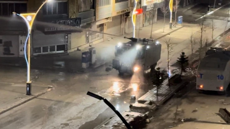 Cengiz Topel Caddesi üzerinde bir araya gelen çok sayıda kişi, Van’da Abdullah Zeydan’ın memnu hakkının geri alınarak mazbatanın AK Parti’li Abdulahat Arvas’a verilmesini protesto etmek istedi. Eski Cezaevi Kavşağı’ndan Merkez İhsaniye Camii’ne kadar slogan atarak yürüyen gruba polis gaz bombası ve tazyikli su ile müdahalede bulundu. Polisin müdahalesiyle ara sokaklara dağılan gruplar burada ateş yaktı.