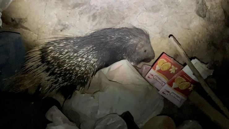 Hakkari'nin Yüksekova ilçesine bağlı Yeşiltaş köyünde nesli tükenmekte olan Hint oklu kirpi görüntülendi.