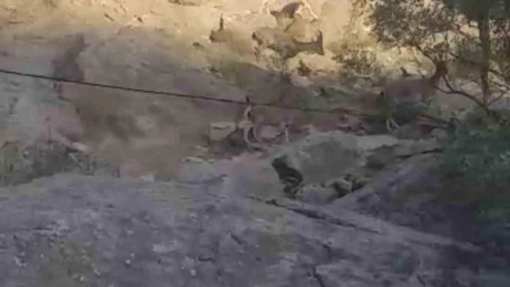 Yüksekova'da sürü halinde dağ keçisi görüntülendi