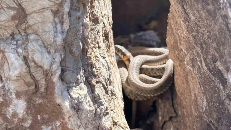 Hakkari’nin Yüksekova ilçe merkezine 30 kilometre uzaklıkta bulunan ’Yılan Pınarı’ bölgesinde sürü halinde güneşlenen yılanlar, Brezilya’nın Yılan Adası’nı andırıyor.