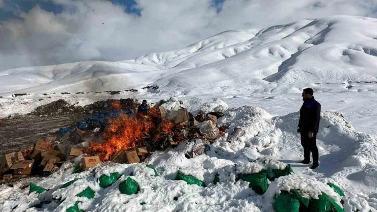 Yüksekova’da bir iş yerinin başvurusu üzerine, depolarında meydana gelen arıza nedeniyle bozulmuş gıdalar tutanak karşılığı zabıta ekiplerine teslim edildi. Daha sonra ilçenin Esendere yolundaki kül dökme noktasına kamyonla getirilen gıda ürünleri, burada yakılarak imha edildi.