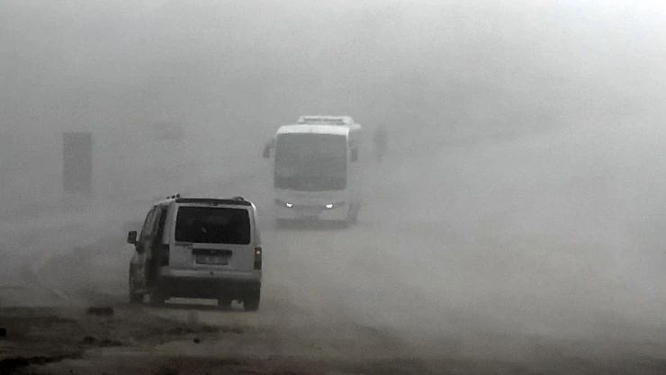 Hakkari'nin Yüksekova ilçesinde yoğun sisten dolayı göz gözü görmezken, görüş mesafesi ise 10 metreye kadar düştü.