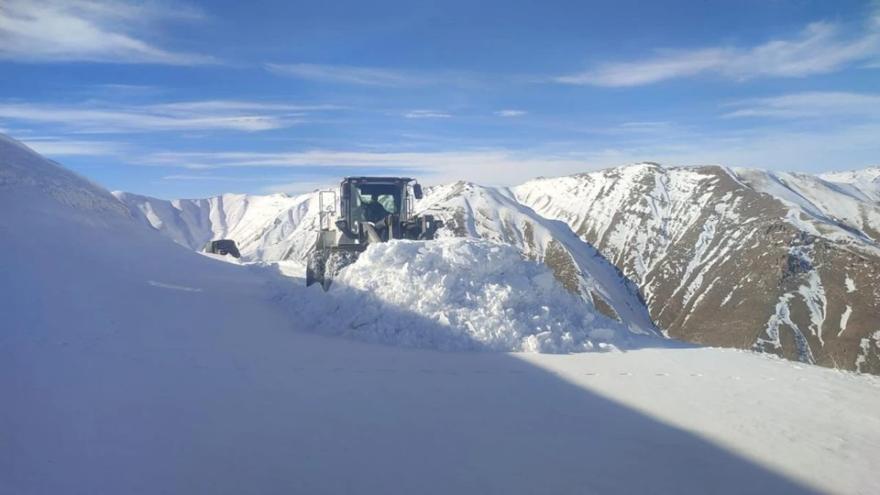 Yüksekova'nın 3 bin rakımlı dağlarında karla mücadele çalışması