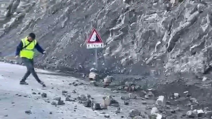 Yüksekova-Van karayolu üzerinde bulunan yeni köprü mevkiindeki dağdan aralıkla karayoluna inen dev kaya parçaları tehlike saçmaya devam ediyor. Geçtiğimiz aylarda gece saatlerinde inen kaya parçaları yolu tamamen kapatırken, kayaların isabet etmesi sonucu bir araç zarar görmüş ve içinde bulunan sürücü yaralanmıştı. Yaşanan olay üzerine bölgede aylardır nöbet tutan Karayolları 117. Yüksekova Şube Şefliği ekipleri, bölgeyi kaya parçalarını temizleyerek trafiğe açmıştı. Bugün akşam saatlerinde aynı noktada sürücülerin seyir halinde olduğu sırada taş parçaları yola inmesi sonucu sürücülere zor anlar yaşattı. Kısa sürede olay yerine giden ekipler bölgeyi temizleyerek yolu yeniden trafiğe açtı.