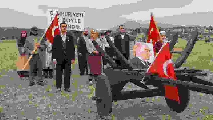 1933 yılında Cumhuriyet kutlamalarında Hüsnü Kazım Özler tarafından çekilen “Cumhuriyeti biz böyle kazandık” fotoğrafı, 90 yıl sonra tekrar can buldu. Uşak Belediyesi Şehir Tiyatrosu oyuncuları Cumhuriyet’in 100. yılında, zaferin mutluluğunu ve gururunu tekrardan hissettirmek için kamera karşısına geçti.