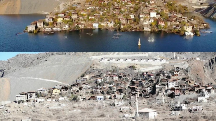 - Yusufeli Barajı'nın yapılması ile sular altında kalan köy baraj suları çekilince yeniden ortaya çıktı