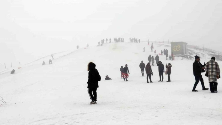 Hem Gümüşhane’ye hem de Trabzon’a 45 dakika mesafede yer alan ve Arap turistlerin de olduğu alanda kimisi kayak kimisi kızak yaparken bazı vatandaşlar da alandaki kar motorlarıyla tur atıyor.