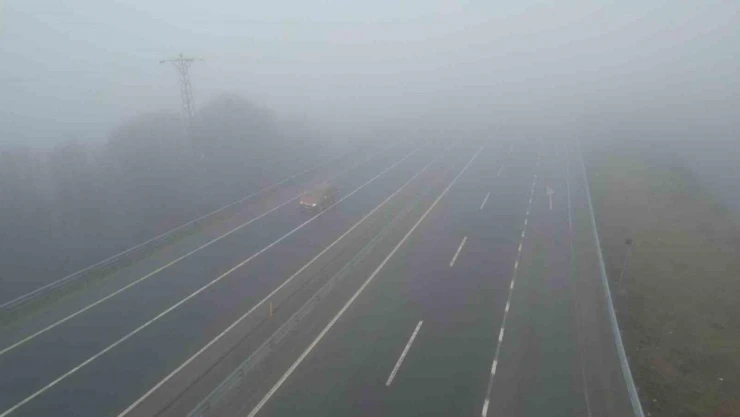 Öte yandan karayolundaki sis dron ile havadan görüntülendi.