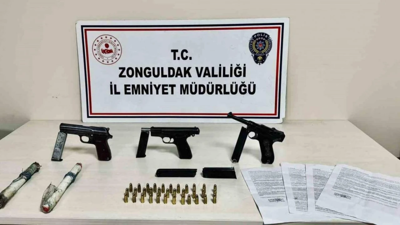 Kaçakçılık Organize ve Mali Suçlarla Mücadele Şube Müdürlüğü Kilimli ilçesi Gelik beldesinde nitelikli yağma ve tefecilik suçunu işleyen, A.A. (39), G.A. (31) ve M.A.A.(84) isimli şüpheliler yakalandı. Operasyon neticesinde 3 adet ruhsatsız tabanca, 34 adet 9 mm tabanca fişeği, 2 adet daireye ait satış sözleşmesi, 2 adet el yapımı dinamit ele geçirildi. Yapılan incelemelerde A.A.(39) isimli şahsa ait kaçak ocak tespit edilerek ilgili kurumlar nezaretinde imha edildi.